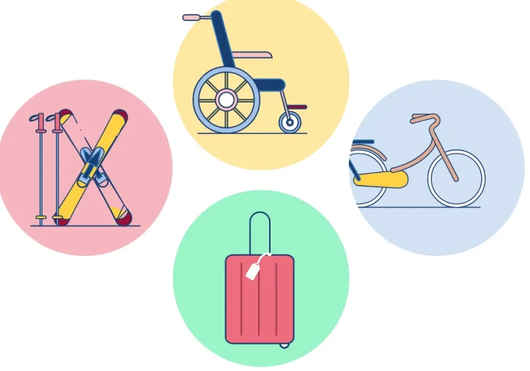 - Vélo plié ou démonté (sous housse 90 × 130 × 50 cm max) : il est considéré comme un bagage à main. Il est gratuit dans tous les trains (sauf option payante à 5€ sur OUIGO TGV).