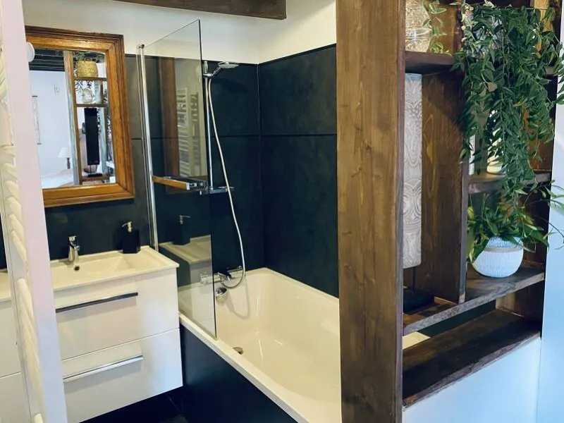 Au rez-de-chaussée, profitez de la cheminée, du coin télé et de la grande cuisine familiale pour préparer vos dîners. À l'étage, de votre espace privé, du petit salon des voyageurs pour vous détendre en profitant d'un jeu de société, d'un vinyle ou d'un bon livre de notre bibliothèque et d'un espace kitchenette (micro-ondes, bouilloire, frigo et tisanerie).