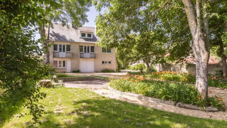 Pour 9 personnes, la Maison Bleue est grande, lumineuse et entourée d'un grand jardin clos. A 10 minutes à pied de la plage de sable de Ver-sur-Mer, c'est une maison de vacances paisible. Au calme, appréciez la vue sur la mer au nord et la vue sur la campagne au sud depuis la grande terrasse plein-sud. Jardin, cours et parking clos.