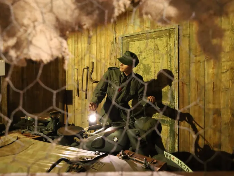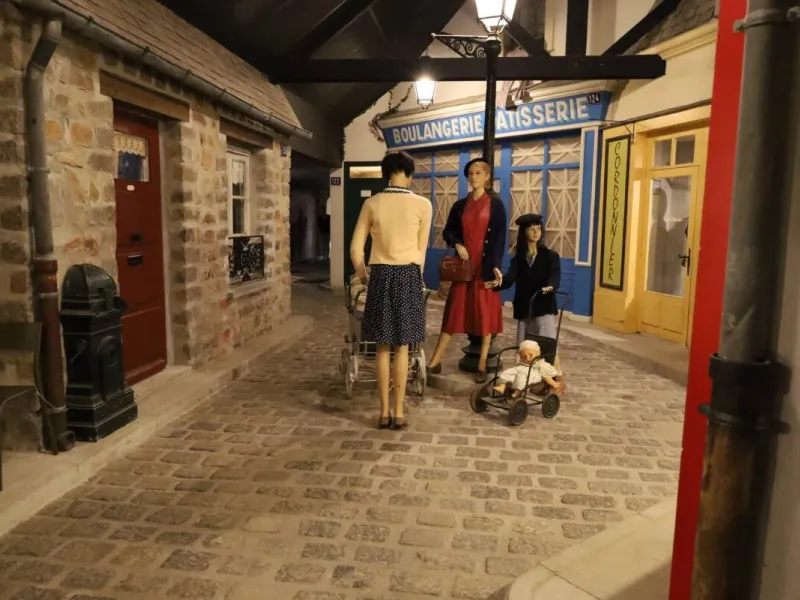 Ces explications sont accompagnées de belles mises en scènes qui plongent le visiteur dans l’ambiance de l’époque. Cheminez à travers une rue reconstituée, typique des années 40, avec ses boutiques et maisons d’habitation. Découvrez également de nombreux véhicules et matériels d’époque, ainsi qu'un blockhaus authentique intégré à la visite et qui offre une vue imprenable sur la plage.